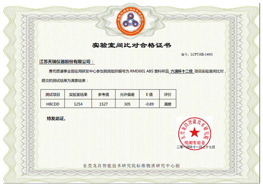 附錄1:實(shí)驗(yàn)室間比對合格證書(六溴環(huán)十二烷)