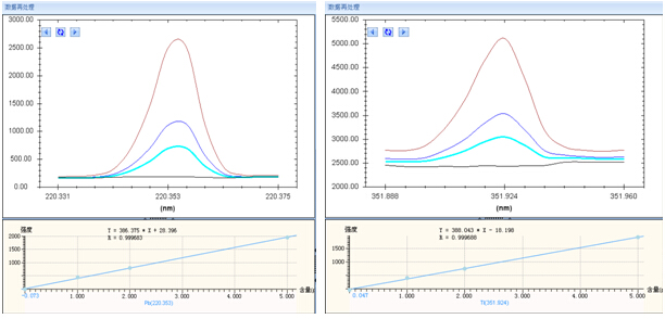 在 ICP-AES正常運行后,將樣品溶液通過進樣系統(tǒng)引入到電感耦合等離子體中,分析波長測定各元素的光譜強度。