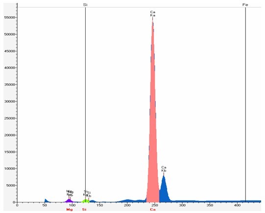 常呈菱面體。遇冷稀鹽酸時會慢慢出泡。有的白云石在陰極射線照射下發(fā)橘紅色光。白云石是組成白云巖和白云質(zhì)灰?guī)r的主要礦物成分。白云石可用于建材、陶瓷、玻璃和耐火材料、化工以及農(nóng)業(yè)、環(huán)保、節(jié)能等領(lǐng)域。主要用作堿性耐火材料和高爐煉鐵的熔劑;生產(chǎn)鈣鎂磷肥和制取硫酸鎂;以及生產(chǎn)玻璃和陶瓷的配料。白云石含量大概為:CaO 30.4%、 MgO 21.9%、 CO2 47.7%。使用EDX3600B對它們進行測試。