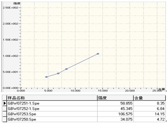 以下使用EDX 3600B型對螢石國標(biāo)樣GBW07252實際測試的所得的譜圖,工作曲線等相關(guān)數(shù)據(jù):
