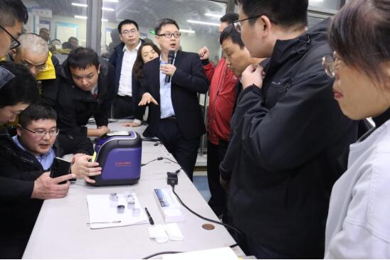 隨后,考察團(tuán)一行移步至公司三樓Cube100S產(chǎn)品生產(chǎn)線。針對炭黑行業(yè)的關(guān)鍵檢測需求,天瑞技術(shù)專家在現(xiàn)場對Cube100S能量色散X熒光光譜儀、EDX3300SPLUS 側(cè)照式單波長X熒光光譜儀兩款儀器進(jìn)行了專場講解與實(shí)機(jī)演示,儀器表現(xiàn)出的高精度與高穩(wěn)定性,給專家領(lǐng)導(dǎo)們留下了深刻印象。他們不時駐足,就儀器的檢測原理、技術(shù)參數(shù)與天瑞工程師進(jìn)行深入交流。