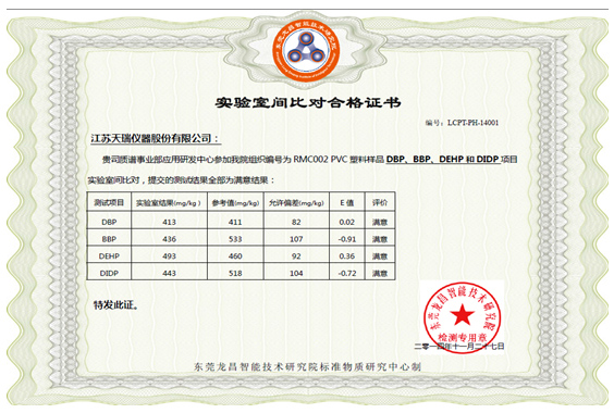 錄2:實(shí)驗(yàn)室間比對合格證書(DBP、BBP、DEHP)