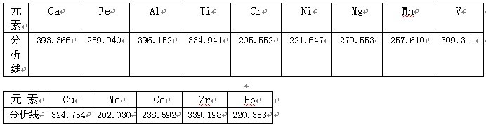 根據(jù)ICP軟件譜線庫提供所有元素不同譜線,首先選擇被測(cè)元素靈敏度高的譜線,其次考慮不受樣品基體及被測(cè)元素相互之間干擾小的譜線的原則,選擇分析線如下。