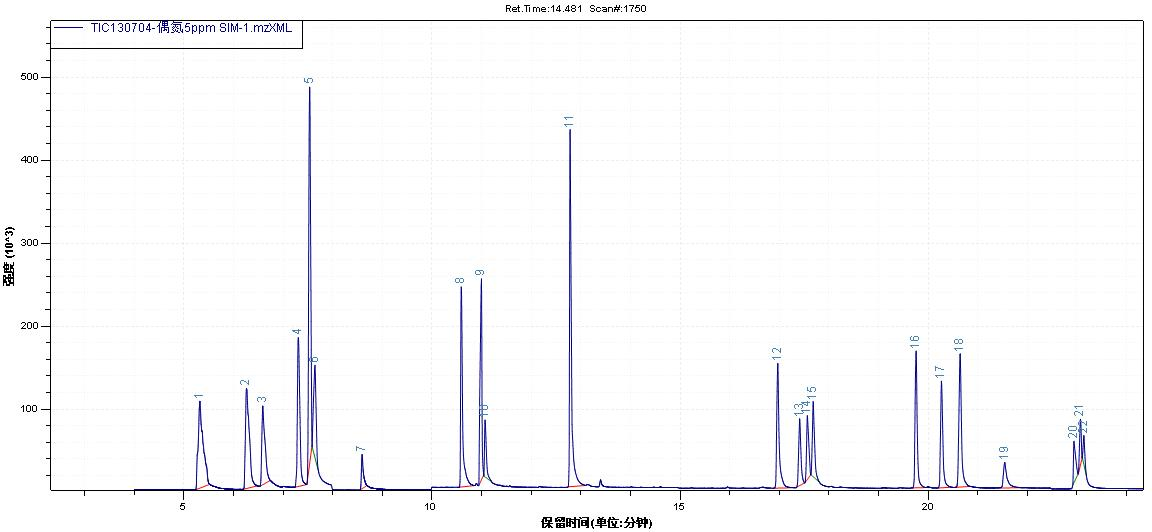 紡織品中23種偶氮染料的測(cè)試TIC圖