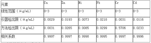 表1 待測金屬元素的檢出限及線性范圍