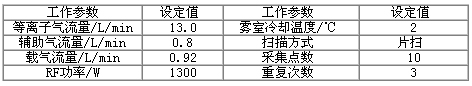 表1 儀器工作參數(shù)