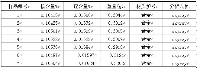 一合金國(guó)標(biāo)GBW(E)010136-9901(C%:0.104,S%:0.015)用高頻紅外碳硫儀168型測(cè)試結(jié)果如下: